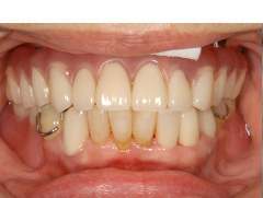 メタルフレームはチタンを使用しているため、生体親和性が高く、軽くて、多数歯補綴ではリーズナブルに上部構造が完成します。